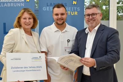 „In den niederösterreichischen Landes- und Universitätskliniken sind Zivildiener ein unerlässlicher Bestandteil des Klinikalltags. Sie unterstützen das Personal tatkräftig bei einer Vielzahl an praktischen und organisatorischen Aufgaben. Dank seines besonderen Engagements hat Marcel Rauer mit der Erstellung des Zivildienst-Handbuches einen