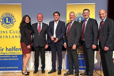 Im v.l.n.r: Alexandra Leeb, Lions Präsident Georg Leeb, Dr. Roman Szeliga, Helmut Schneider, Walter Pamperl und Jürgen Recher