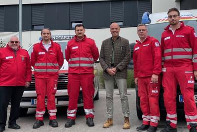 Im Bild von links nach rechts: Bezirksstellenleiter Günter Sidy, Daniel Logar, Adrijan Keri, Mag. Woitsch, Thomas Fuss und Bernhard Sattler; Notarzt Dr. Philip Wimmer war beruflich verhindert | |