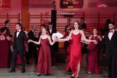 Für besondere Unterhaltung sorgte die traditionelle Mitternachtseinlage: Ein Stöckelbruch, ein Schlager Anfall und eine „Dehydrierung“ aufgrund eines leeren Weinglases – typische Notfallszenarien, humorvoll im Ballsaal Stil inszeniert – sorgten für viele Lacher im Publikum.