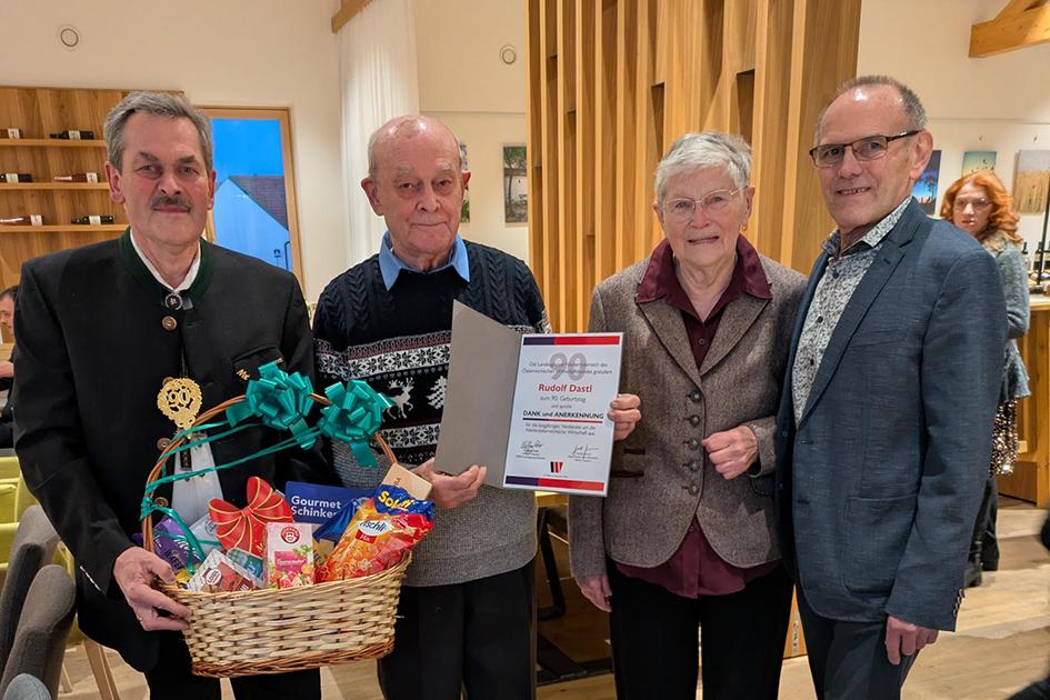 90. Geburtstag und 68. Hochzeitstag! Rudolf Dastl Am 30. Dezember 2025 konnte Rudolf Dastl aus Haugsdorf gleich zwei besondere Jubiläen feiern: Seinen 90. Geburtstag und den 68. Hochzeitstag mit seiner Gattin Theresia. | |