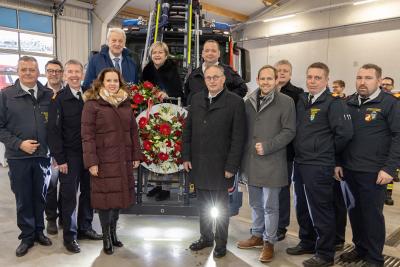 Im Rahmen der Zeremonie wurden Johann Gantner sen., Johann Gantner jun. und Wilfried Neusser mit der Florianiplakette ausgezeichnet – ein Zeichen der Anerkennung für ihre fortwährende Unterstützung der Feuerwehren. Ein besonderer Dank galt auch der Firma Hörmann Transporte, die ihre Halle für die Feier zur Verfügung gestellt hatte, sowie Frau Elfriede Babinsky, der Fahrzeugpatin der neuen Drehleiter.