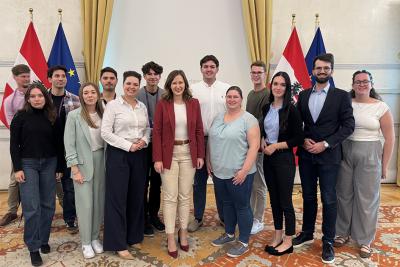 Zu Besuch im Bundeskanzleramt! JVP Weinviertel Spannende Einblicke in die politische Arbeit im Herzen der Republik erhielten junge engagierte Weinviertlerinnen und Weinviertler bei einem Besuch im Bundeskanzleramt in Wien. Organisiert wurde der Ausflug von Anna Sackl, JVP-Bezirksobfrau von Hollabrunn und Weinviertelreferentin der JVP Niederösterreich. | |