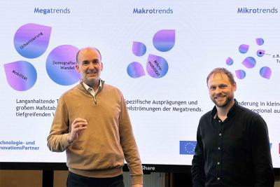 Diese Workshopreihe wurde neu von den TIP ¬ den Technologie- und InnovationsPartnern — entwickelt, um Unternehmen dabei zu unterstützen, aktuelle Trends und Megatrends für ihre Geschäftsmodelle zu nutzen. Die Vortragenden Wendelin Regau und Andreas Kornherr (beide Referenten des TIP) zeigten praxisnah, wie Künstliche Intelligenz helfen kann, relevante Entwicklungen zu erkennen und innovative Ideen abzuleiten. Die teilnehmenden Unternehmerinnen und Unternehmer arbeiteten mit der KI-Plattform ChatGPT und diskutierten anschließend konkrete Anwendungsfelder für ihre Branchen und waren begeistert von den praxisorientierten Impulsen. | ![]() |