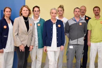 16 Tage gegen Gewalt! Rund 1.400 Mitarbeiteri:nnen und Mitarbeiter unterstützen die Initiative Die Mitarbeiterinnen und Mitarbeiter der Landeskliniken Hollabrunn und Korneuburg-Stockerau unterstützen auch dieses Jahr wieder die Aktion „Orange the World“ und tragen als sichtbares Zeichen dafür Buttons