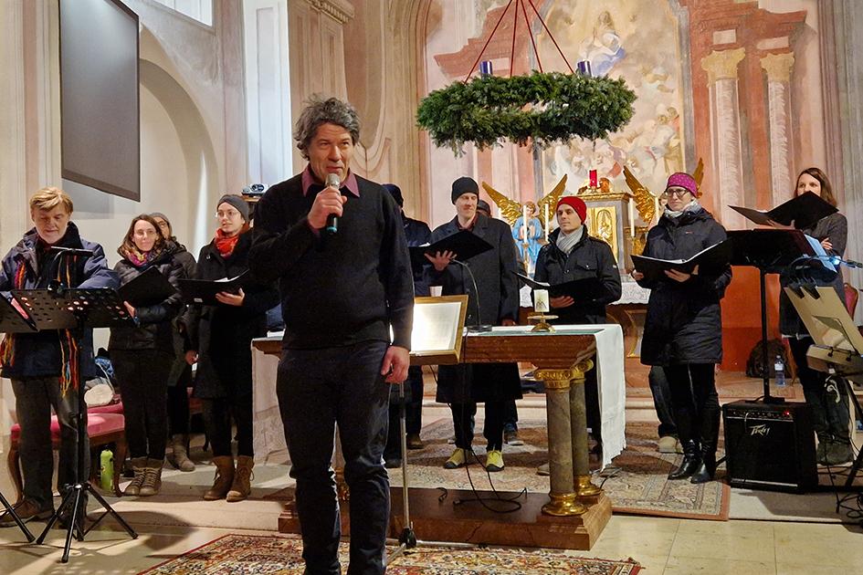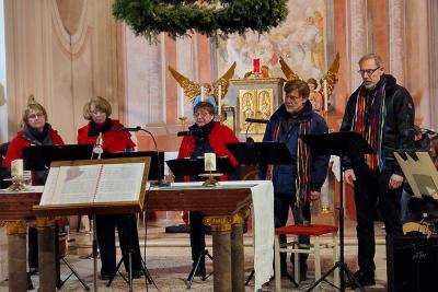 Unter dem Motto: „Folgen wir den Hirten“ unterhielten die Chöre „Xsangsbouquet“ und „Singing Grapes“ die zahlreichen Gäste, unter ihnen Pfarrer P. Johannes LINKE SAC., Ehrenkanonikus Willibald STEINER, Landtagsabgeordneten Bgm. ÖkR Richard HOGL, den Bürgermeister von Hadres Josef FÜRNKRANZ, sowie Ortsvorsteher GGR Andreas KORNHERR. | ![]() |