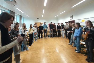 Workshop im BG! Wiener Arnold Schönberg-Center Am Donnerstag, den 18. Dezember, konnten die beiden Musikgruppen der Klassen 8ABC einen Workshop des Wiener Arnold Schönberg-Centers mit Kollegin Mag. Monika Musil MA BA in der Schule erleben. | |