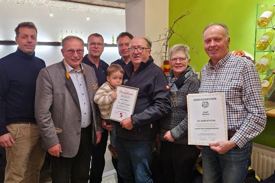 Im Bild oben, v.l.n.r.: Reinhard Mattes, Richard Hogl, Josef Ernst, Michael Müll, Josef Mattes mit Enkelsohn Karl Mattes, Maria Kappe, Adolf Hudetschek;