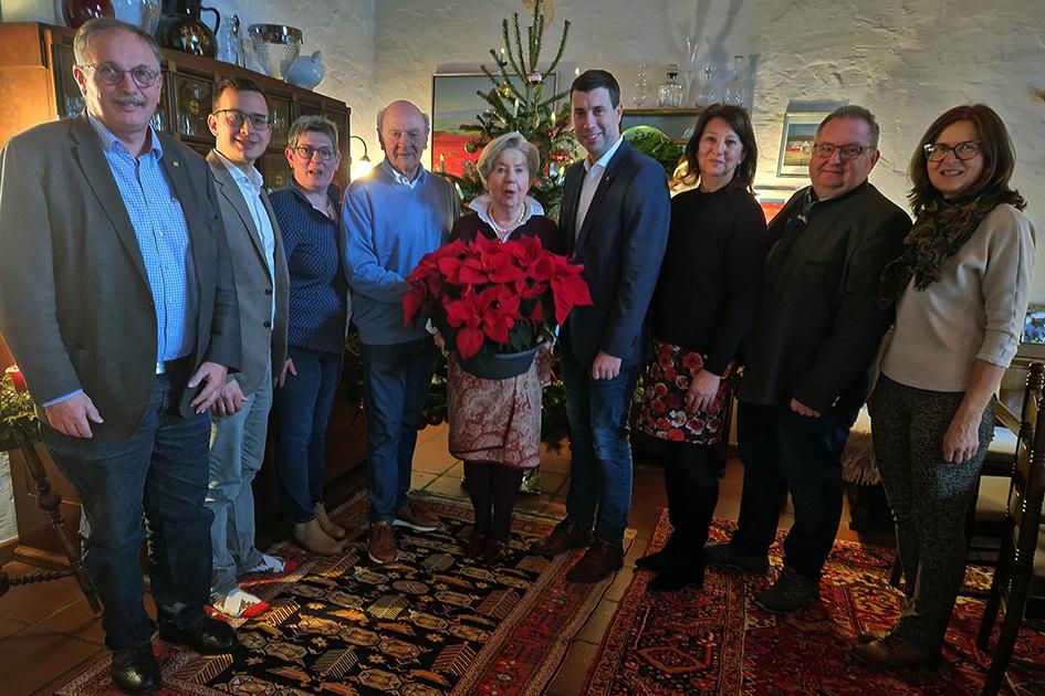 Aus diesem Grund kommen (ebenso traditionell) am Vormittag des 24. Dezember, so auch 2025, der Bürgermeister von Prölls Heimatgemeinde Ziersdorf Stefan SCHRÖTER gemeinsam mit allen anderen Bürgermeistern des Schmidathales, weiters Landtagsabgeordneter Bgm. ÖkR Richard HOGL, dessen Vorgängerin ÖkR Marianne LEMBACHER, sowie die nunmehr ehemalige Chefin der Volkskultur Niederösterreich Prof. Dorli DRAXLER Besuch um „ihren Erwin“ hoch leben zu lassen. In diesem Jahr war auch der Schauspieler Rudolf ROUBINEK, alias „Seyffenstein“ zu Gast. | ![]() |