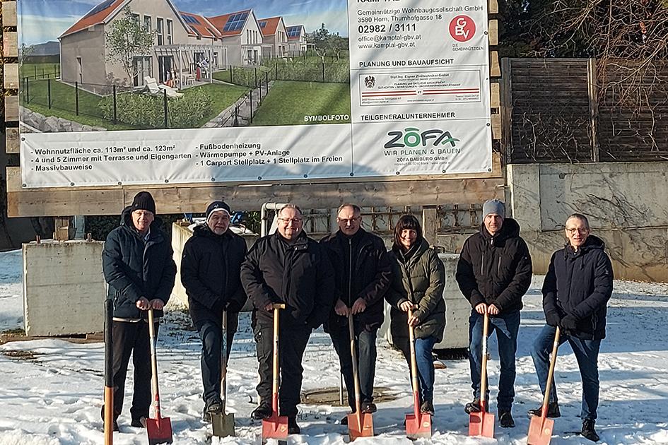 Spatenstich in Maissau! Neue Reihenhausanlage Die Gemeinnützige Wohnbaugesellschaft Kamptal GmbH errichtet gemeinsam mit dem Architekturbüro Dip. Ing. Eigner Ziviltechniker GmbH in 3712 Maissau insgesamt sechs Reihenhäuser mit der Option auf einen späteren Kauf. Diese Reihenhäuser bieten eine großzügige Wohnfläche von 113 m² bis 123 m² (4 bzw. 5 Zimmer) und verfügen über einen PKW-Stellplatz mit Carport sowie einem zusätzlichen Stellplatz im Freibereich. | |