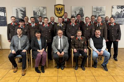 Im Bild die neu – bzw. wiedergewählten Kommandanten und deren Stellvertreter mit Gemeindevertretern – v.l.n.r.: - sitzend Stefan Vietze, Annemarie Maurer, Richard Hogl, - stehend – Stefan Beer, Tobias Fellinger, Johannes Kraus, Gerwin Krimps, Rene Schimann, Stefan Hahn, Ronald Winglhofer, Markus Zahlbrecht, Christof Vietze, Andreas Kerschl, Raphael Wickenhauser, Harald Zehetner, Helmut Fischer, Markus Maurer, Dominik Ecker, Patrik Ollinger | |