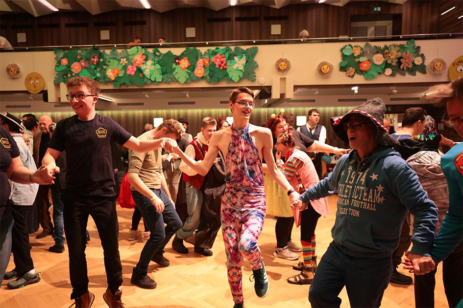 Fun4all: Spaß, Tanz, Begegnung! vier Stunden gelebte Inklusion! Gestartet wurde in traditioneller Weise mit der von „Dixi“ komponierten und interpretierten Hymne fun4all. Es folgte die Begrüßung durch die Organisatorin Maria Breindl. Sie richtete Gruß- und Dankesworte an alle, die zum Gelingen des Festes beigetragen hatten. Übermittelt wurden auch Grüße von Michaela Böhm, die krankheitsbedingt leider nicht dabei sein konnte. |