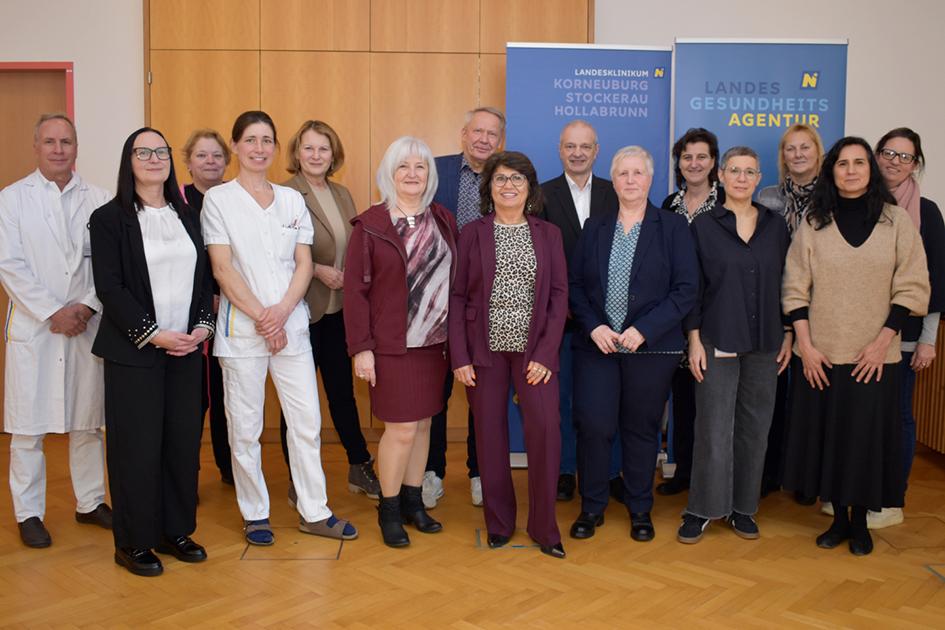 Klinikleitung setzt Zeichen der Wertschätzung! Auch in Hollabrunn Im Laufe des heurigen Jänners fanden an jedem der drei Weinviertler Klinikstandorte Korneuburg, Stockerau und Hollabrunn Feierstunden statt, im Zuge derer die Dienstjubilare geehrt und Pensionsantritte