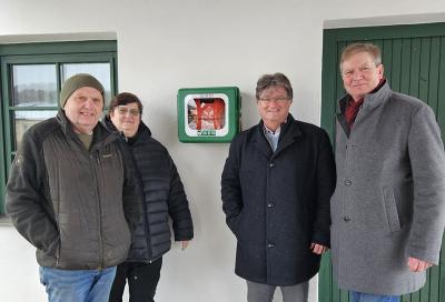 Im Bild v.l.n.r.: Ortsvorsteher Helmut Semmelmeyer, die Obfrau des Dorferneuerungsvereins Martina Binder, Unternehmer Ernst Seifried sowie der Präsident der Raschalaer Köllamauna, Mag. Franz Stockinger. | |