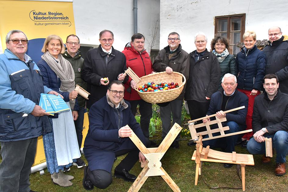 Erste Reihe: Harald Froschauer, Geschäftsführer der Volkskultur Niederösterreich, Martin Lammerhuber, Holdinggeschäftsführer der Kultur.Region.Niederösterreich und Obmann des Landschaftsparks Schmidatal Florian Hinteregger;