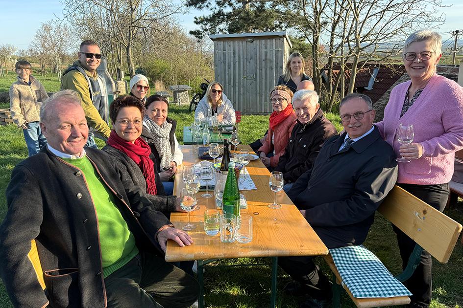 Bürgermeister und Ortsvorsteher LAbg. ÖkR Richard HOGL hat am Ostermontag ebenfalls alljährlich seinen familieneigenen Keller geöffnet – heuer jedoch blieben die Pforten aufgrund seiner kürzlichen Operation gesundheitsbedingt geschlossen. Er besuchte jedoch die „Grean“ und kehrte bei Kellergassenobfrau Gemeinderätin Petra THÜRR ein, die im familieneigenen Keller neben der bereits wieder geöffneten „Radlerrast“ auch diese Weinviertler Tradition hochleben ließ. | ![]() |