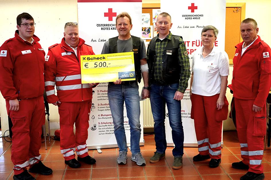 Spende an das Rote Kreuz! Haugsdorf Der Motorsportclub „ Hedgehogs“ hat dem Rotes Kreuz Haugsdorf eine Spende in Höhe von 500 Euro überreicht. Der Betrag wurde im Rahmen des traditionellen Christbaumverbrennens gesammelt, welches jährlich vom Verein organisiert wird. | |